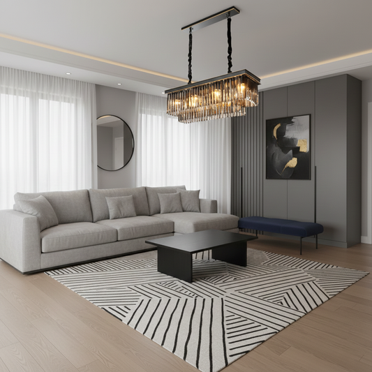 Le salon étant souvent le cœur de la maison, y installer un lustre peut métamorphoser tout l’espace.